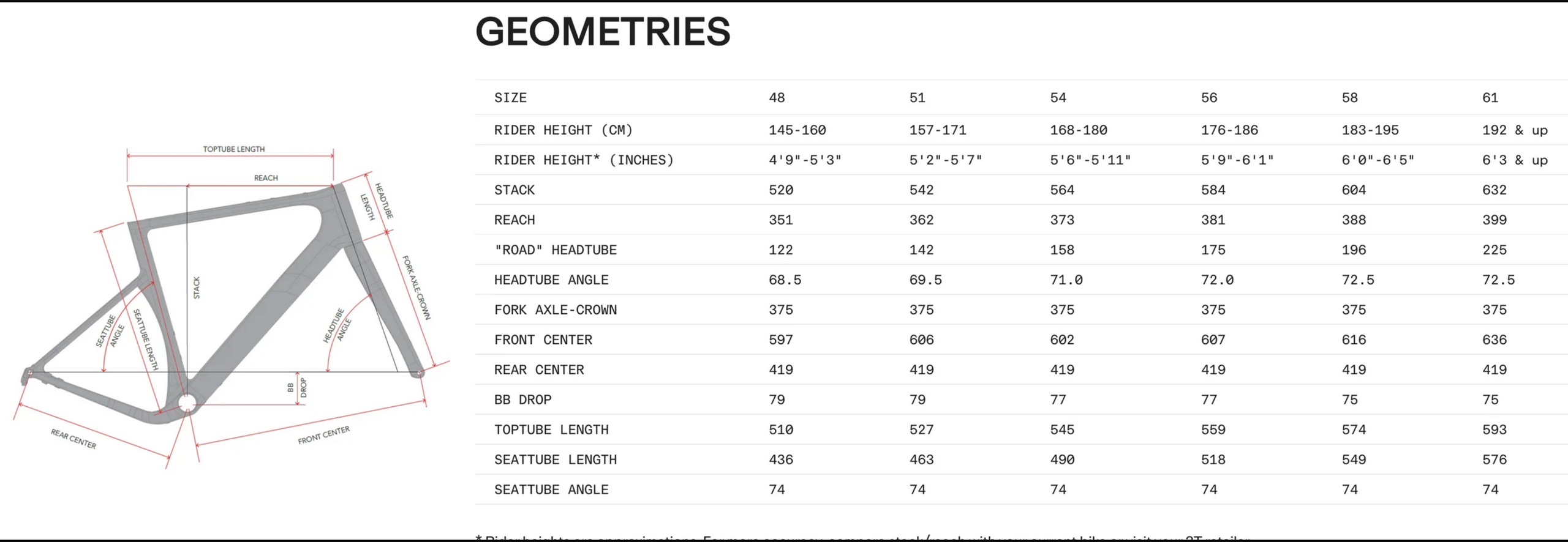 Frame Size: 48cm, 54cm, 56cm, 58cm, 61cm