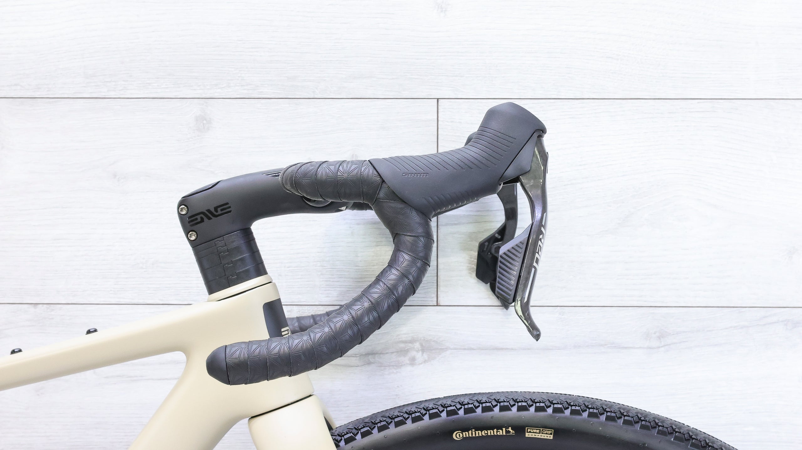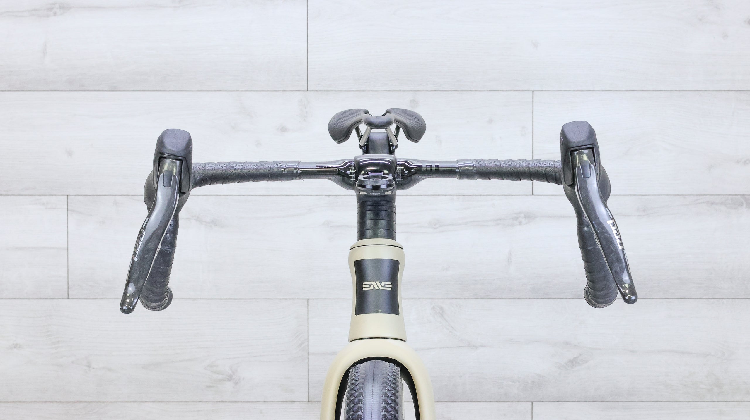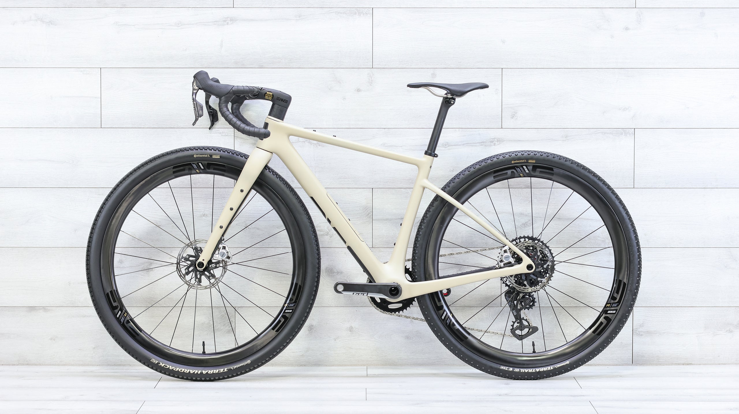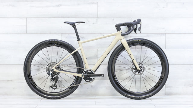 The ENVE MOG is a high-performance gravel bike built for riders who want speed, versatility, and precise handling across mixed terrain. Its carbon frame delivers a smooth, efficient ride with geometry that stays stable on loose gravel while remaining quick and responsive on pavement. Equipped with the SRAM RED E1 13-speed AXS drivetrain, it offers crisp, wireless shifting with a wide gear range suited for long climbs and fast gravel efforts. ENVE SES 3.4 carbon wheels add a lightweight, aerodynamic edge, enhancing acceleration and efficiency on rolling terrain. Together, the build creates a refined, race-capable gravel bike that feels equally at home on fast dirt, broken pavement, and long all-day routes.