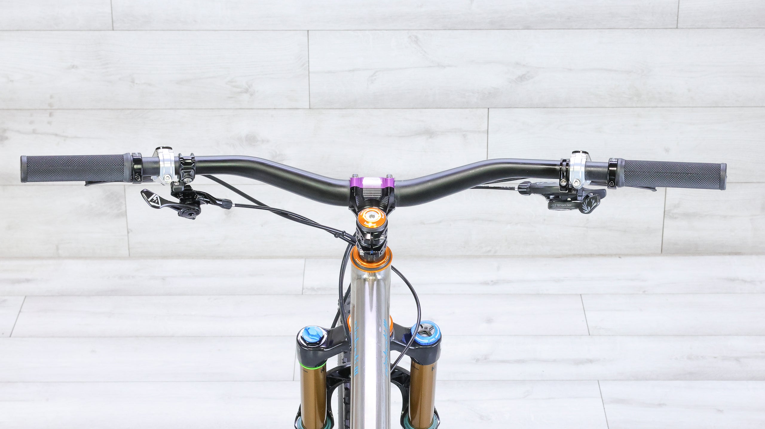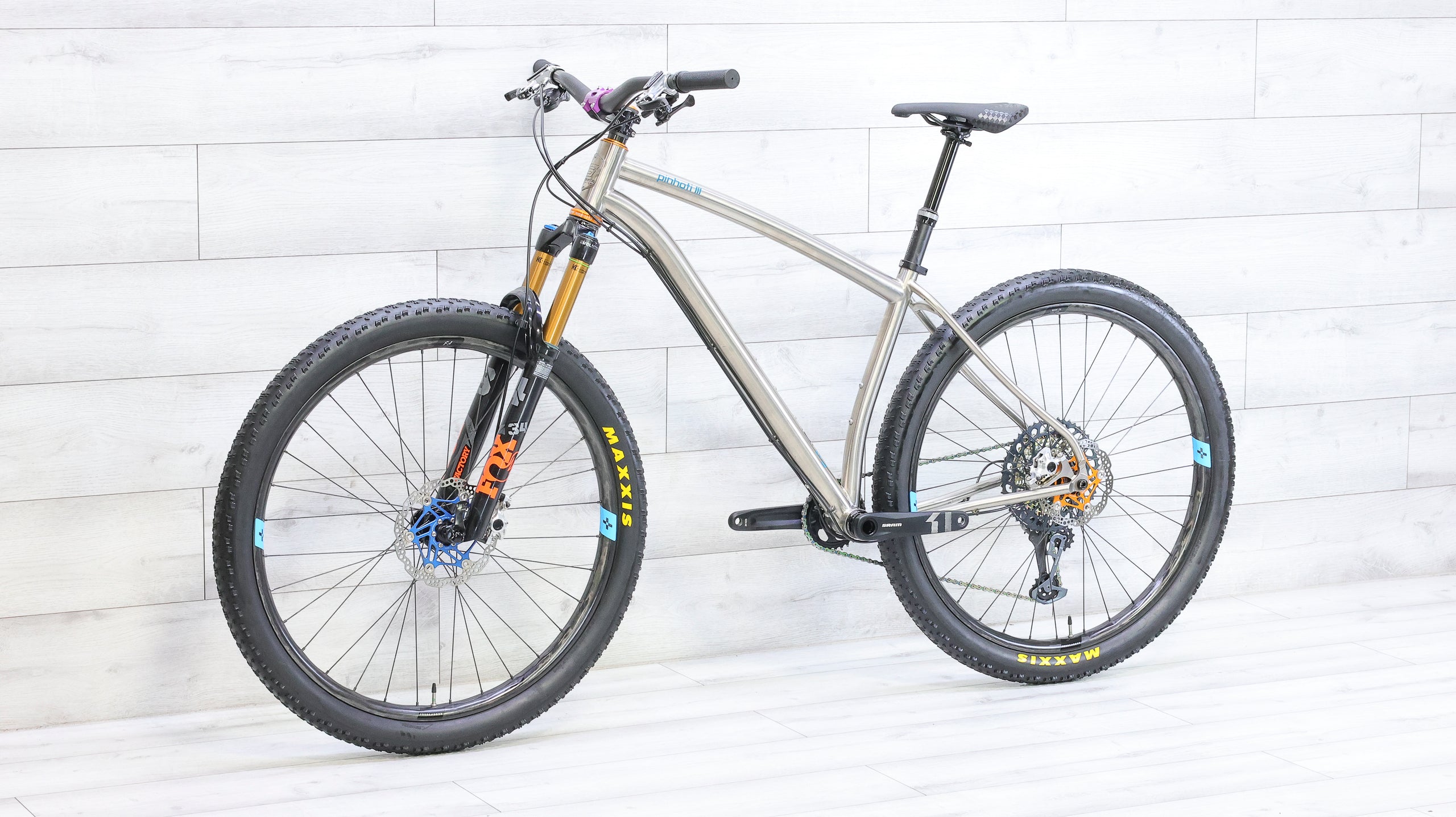 The Litespeed Pinhoti III is a premium hardtail built around a handcrafted titanium frame that blends durability, precision, and a distinctly refined trail feel. Its modern geometry delivers confident handling and efficient climbing, making it well suited for fast singletrack and technical terrain alike. Outfitted with a SRAM X1/XX1 drivetrain for dependable, wide-range gearing, a Fox Factory 34 fork for smooth, controlled suspension performance, and Hope XCR hydraulic brakes for powerful, consistent stopping, this build is dialed for aggressive trail riding. Finished with an SQ Labs 30X carbon handlebar and a Force+Bond 30 EM carbon wheelset laced to Hope Pro 5 hubs, the Pinhoti III offers a responsive, high-end ride for riders who appreciate craftsmanship and trail capability in equal measure.