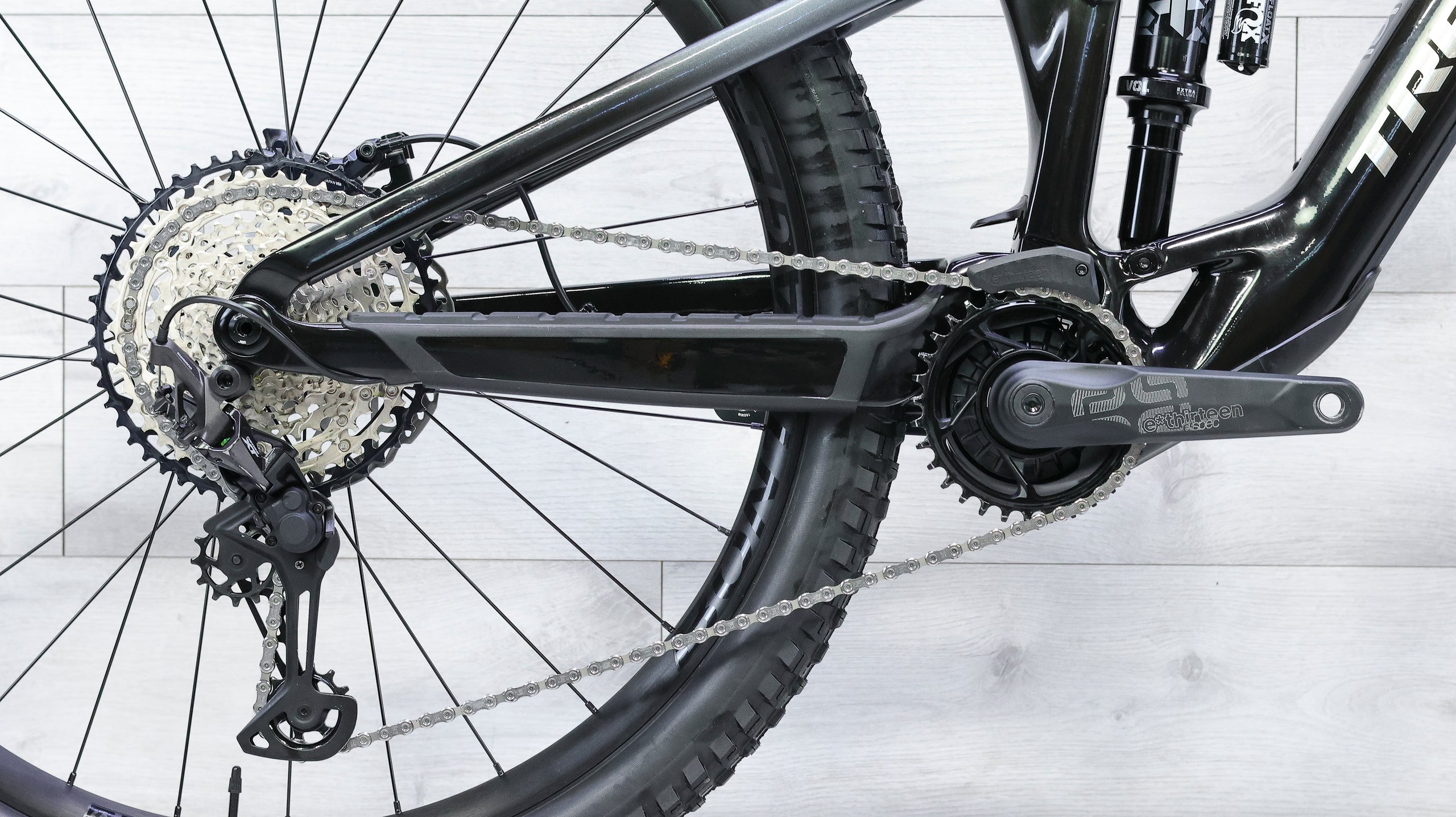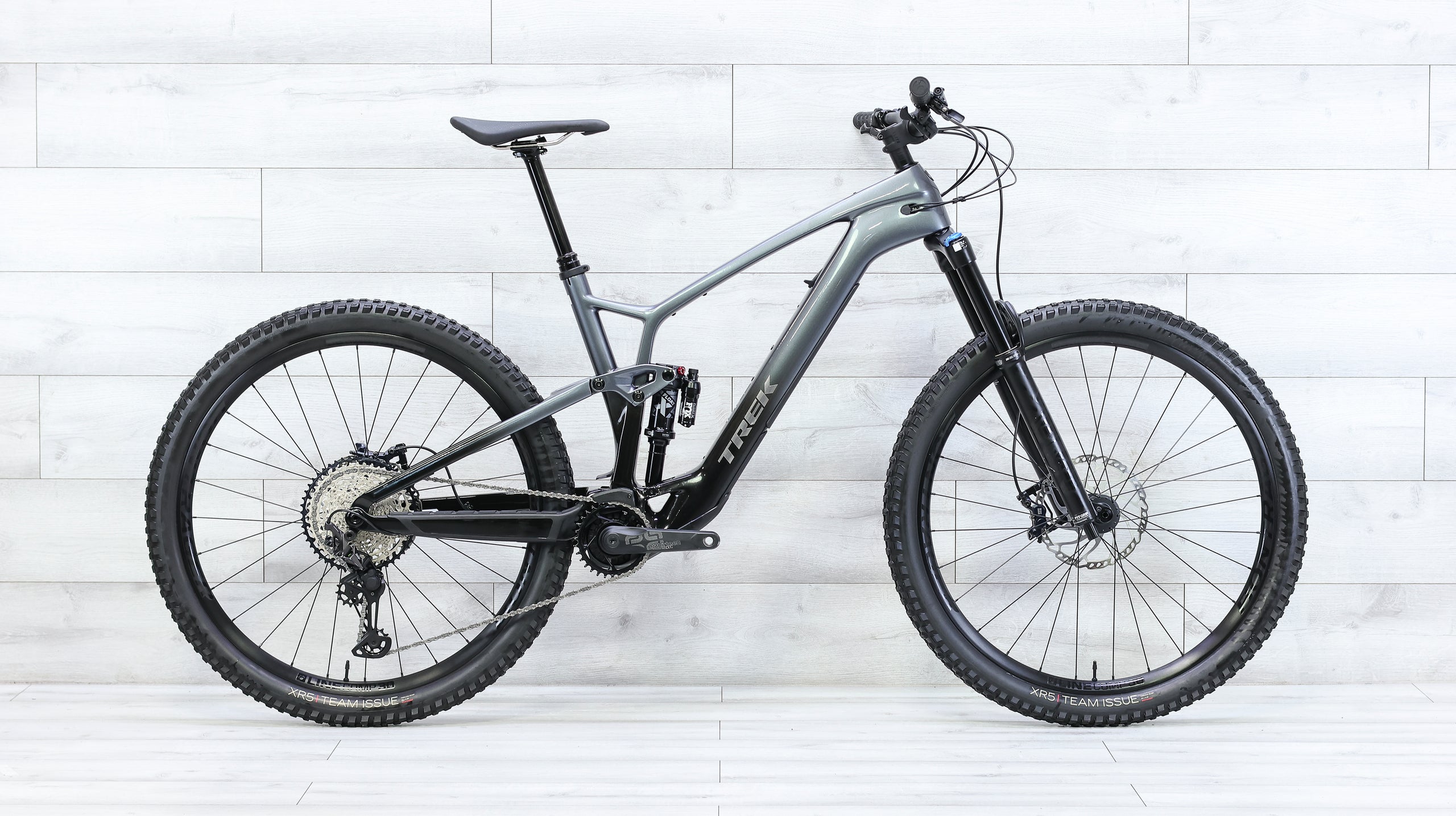 The 2023 Trek Fuel EXe 9.7 is a lightweight, mid-power electric trail bike that blends the agility of a traditional mountain bike with the subtle assistance of an e-MTB. Its OCLV Mountain Carbon frame houses a compact TQ-HPR50 motor and 360Wh battery, delivering smooth, near-silent power that feels natural on climbs and flowy on descents. With 140mm of rear travel and a 150mm Fox Rhythm 36 fork, it strikes the perfect balance between efficiency and capability. The Shimano XT/SLX drivetrain ensures reliable shifting, while the powerful 4-piston brakes add precision and confidence on technical terrain. Quiet, refined, and impressively light, the Fuel EXe 9.7 redefines what an e-mountain bike can feel like—fast, playful, and effortlessly capable.