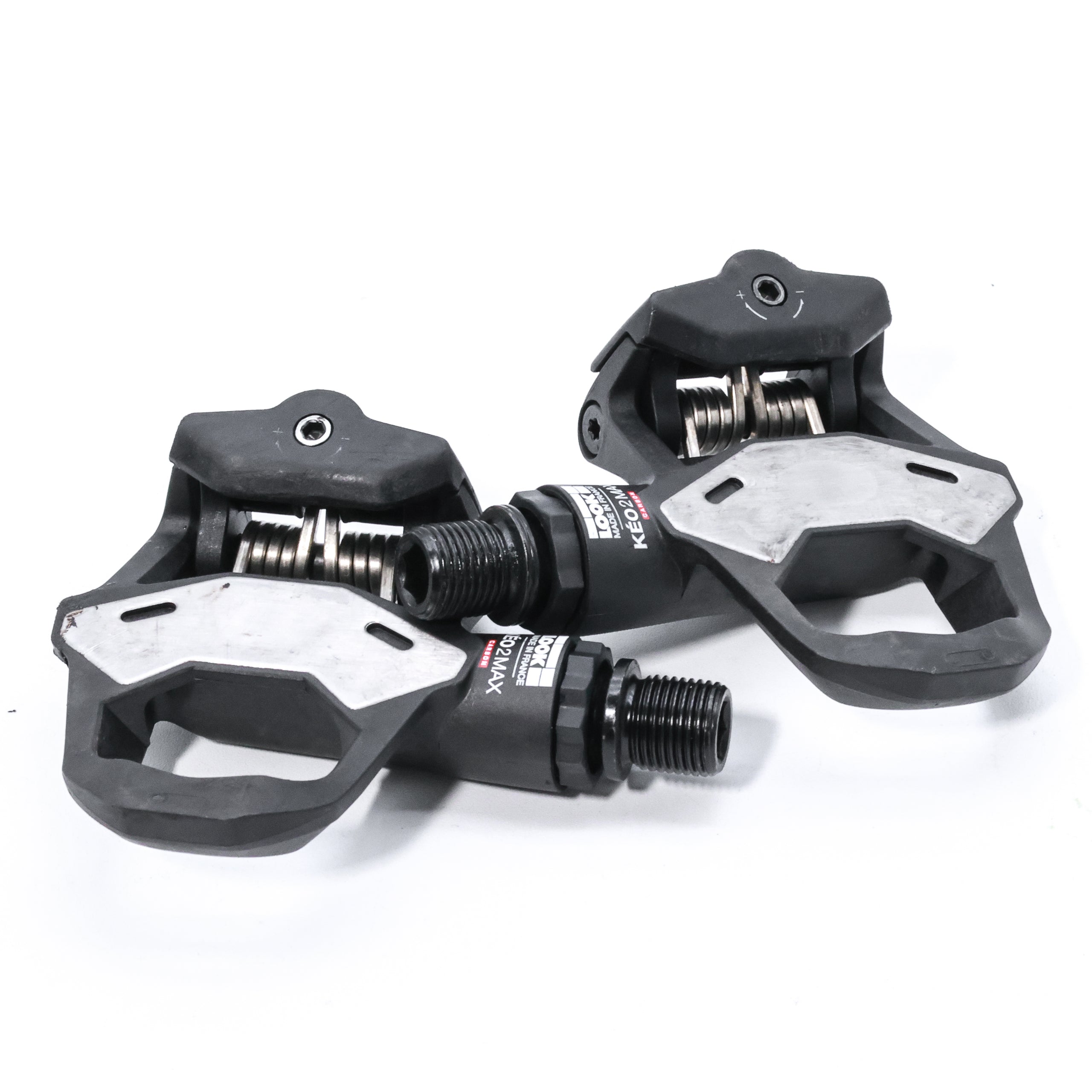 The LOOK Keo 2 Max Carbon Road Bike Pedals, weighing 253 grams with a 53mm Q-factor, strike a balance of lightweight construction and reliable performance. Featuring a carbon body and an oversized stainless steel contact area, they deliver efficient power transfer with a stable pedaling platform. The adjustable spring tension allows riders to fine-tune entry and release to their preference, while the Chromoly + axle with dual seals ensures long-term durability. Built for road cyclists who want race-ready efficiency without excess weight, the Keo 2 Max Carbon pedals offer a responsive, secure connection in a sleek, proven design.