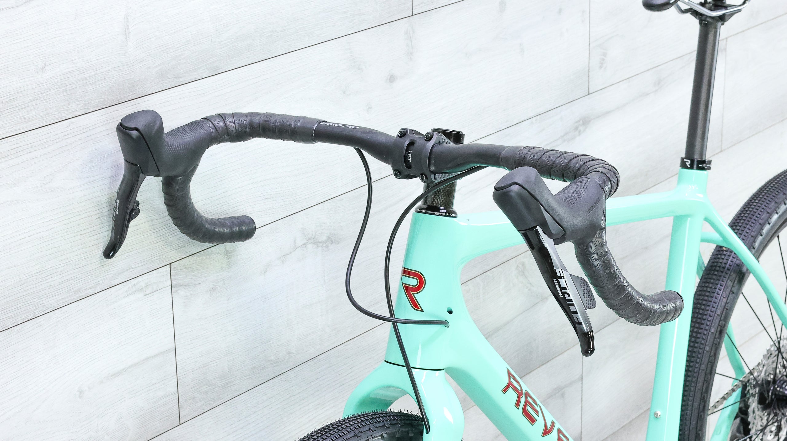 The Revel Rover is a carbon gravel bike built for riders who value durability, smooth ride quality, and long-distance versatility. Its carbon frame delivers a refined, compliant feel that takes the edge off rough roads while staying efficient under power, making it ideal for extended gravel rides and backcountry routes. This build features a SRAM Rival drivetrain paired with Force AXS shifters and a Quarq spindle power meter for precise shifting and data-driven efforts. A Salsa carbon seatpost adds comfort, while an FSA A-Wing Pro handlebar keeps the front end stable and ergonomic. The result is a well-rounded, adventure-ready gravel setup that balances performance with long-term ride quality.