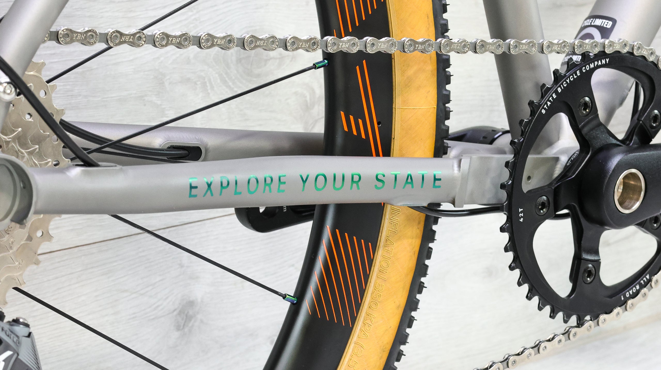 The State Bicycle Co. All-Road Titanium blends the smooth ride quality of titanium with the versatility of a modern all-road platform. Its durable titanium frame delivers a lively, compliant feel that smooths out rough pavement and gravel alike, making it well suited for long mixed-surface rides and backroad exploration. The geometry balances stability and responsiveness, giving the bike confident handling whether you’re spinning along pavement or pushing deeper onto dirt. Designed with generous tire clearance and modern component compatibility, the All-Road Titanium offers a durable, adaptable platform for riders who want a bike that can comfortably move between road miles, gravel routes, and everyday adventure.