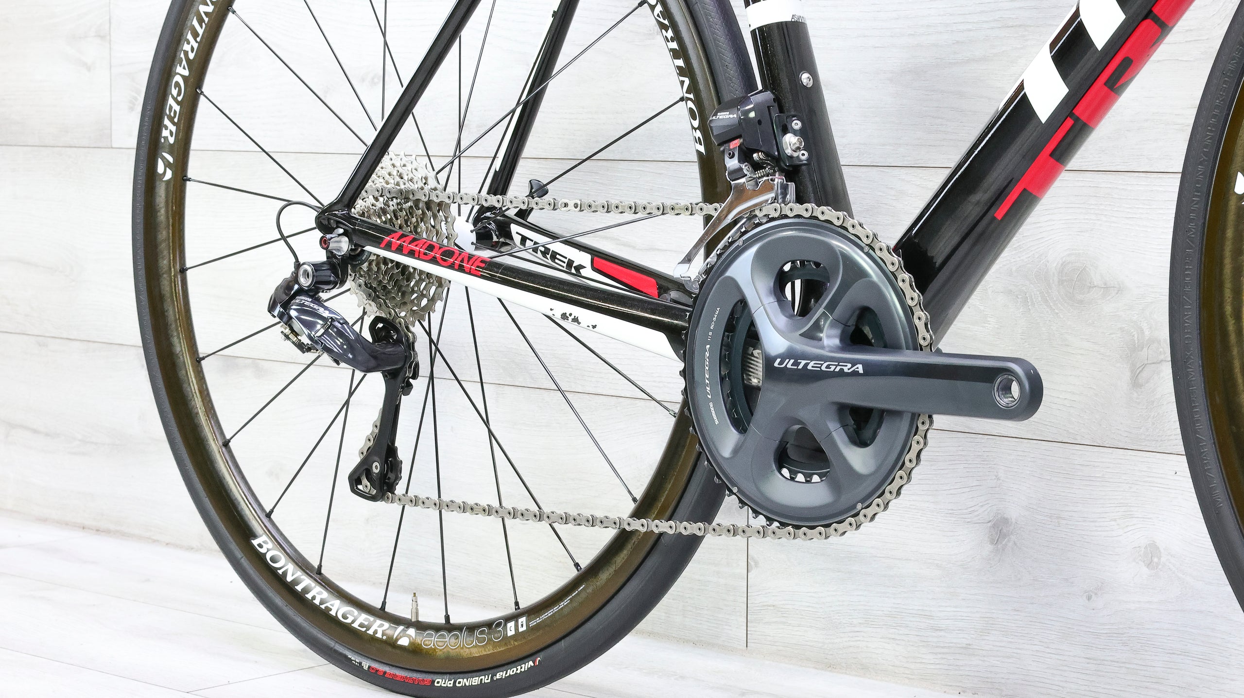 The 2012 Trek Madone 6.2 H2 is a high-performance carbon road bike designed for riders who want race-level efficiency with a slightly more endurance-friendly fit. Built from Trek’s 600 Series OCLV carbon, it delivers an ideal balance of low weight, stiffness, and ride compliance for all-day comfort and climbing speed. The H2 geometry offers a slightly taller head tube for a more relaxed position without compromising power transfer or handling precision. Equipped with Shimano Ultegra Di2 drivetrain and Bontrager Bontrager Aeolus 3 carbon fiber wheels, the Madone 6.2 provides smooth, reliable performance on everything from fast group rides to long solo climbs. Refined, responsive, and comfortable, it’s a classic example of Trek’s race heritage blended with real-world versatility.