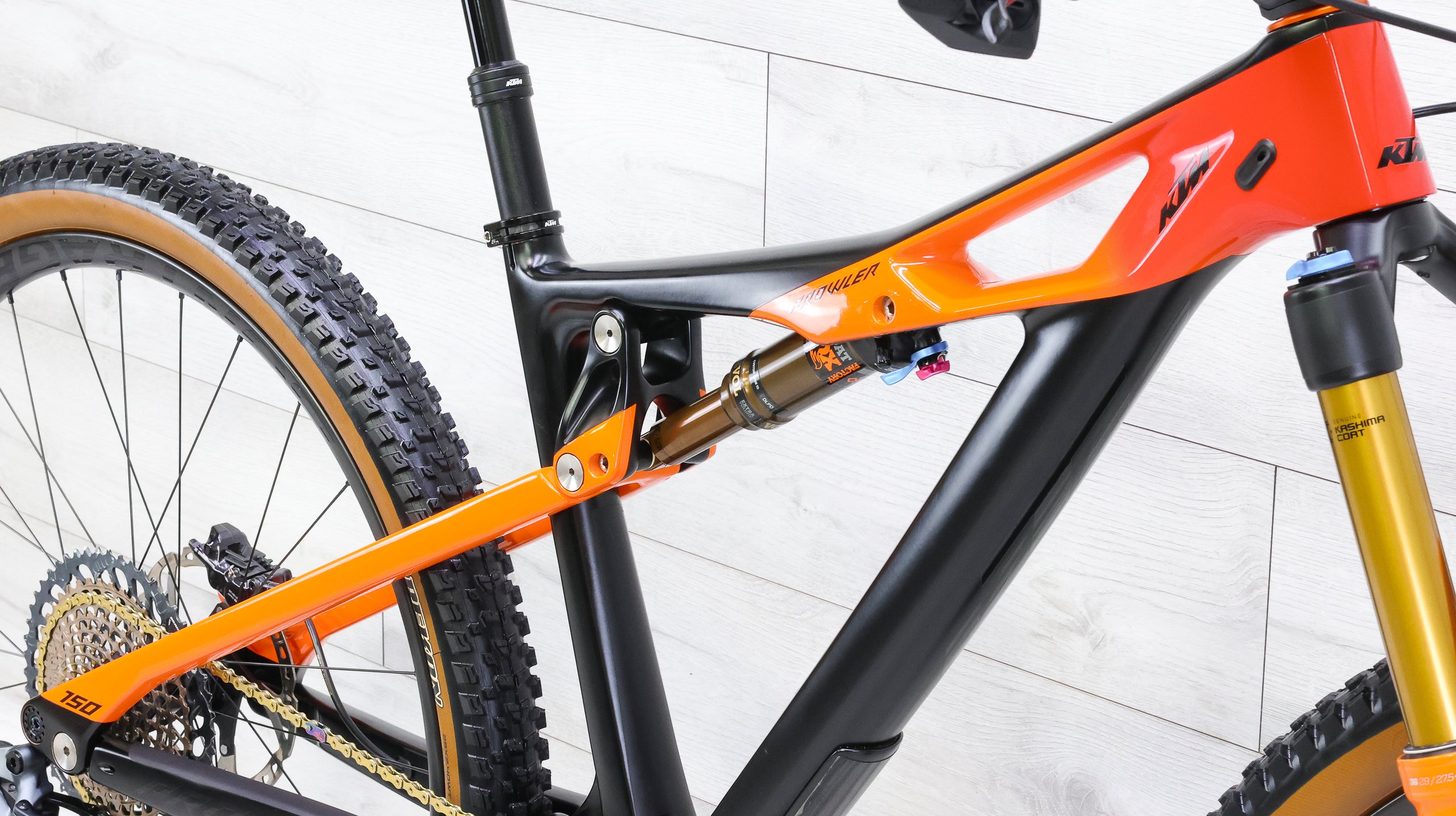 The KTM Prowler Glorious AXS delivers cutting-edge performance with its SRAM GX AXS electronic drivetrain, offering lightning-fast, precise shifting at the push of a button without mechanical cables holding you back. Paired with an absoluteBlack oval chainring engineered for optimized power transfer and reduced chain drop, this setup maximizes your pedaling efficiency across varied terrain. The Bontrager Line Pro 30 carbon wheelset rounds out the package with its lightweight construction and responsive handling characteristics, providing the stiffness needed for aggressive riding while maintaining the compliance that smooths out rough trails. Whether you're tackling technical descents or grinding climbs, this bike combines electronic precision, aerodynamic chainring geometry, and premium wheel technology into one formidable machine built for riders who demand the best.