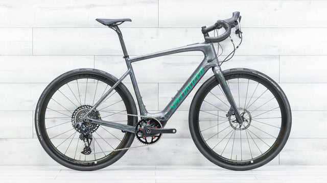 The 2020 Specialized Turbo Creo SL Expert EVO is a lightweight electric gravel and adventure bike designed to extend your rides beyond the pavement. Built on a FACT 11r carbon frame, it features the SL 1.1 motor that delivers smooth, natural-feeling pedal assist up to 28mph, powered by an internal 320Wh battery with range extender compatibility. Outfitted with a SRAM Force/GX AXS 12 Speed electronic drivetrain, it provides precise shifting and a wide gear range suited for varied terrain, while Future Shock 2.0 suspension smooths out rough roads and gravel. With wide tire clearance, hydraulic disc brakes, and EVO-specific geometry for stability, the Turbo Creo SL Expert EVO blends endurance road efficiency with gravel-ready capability.