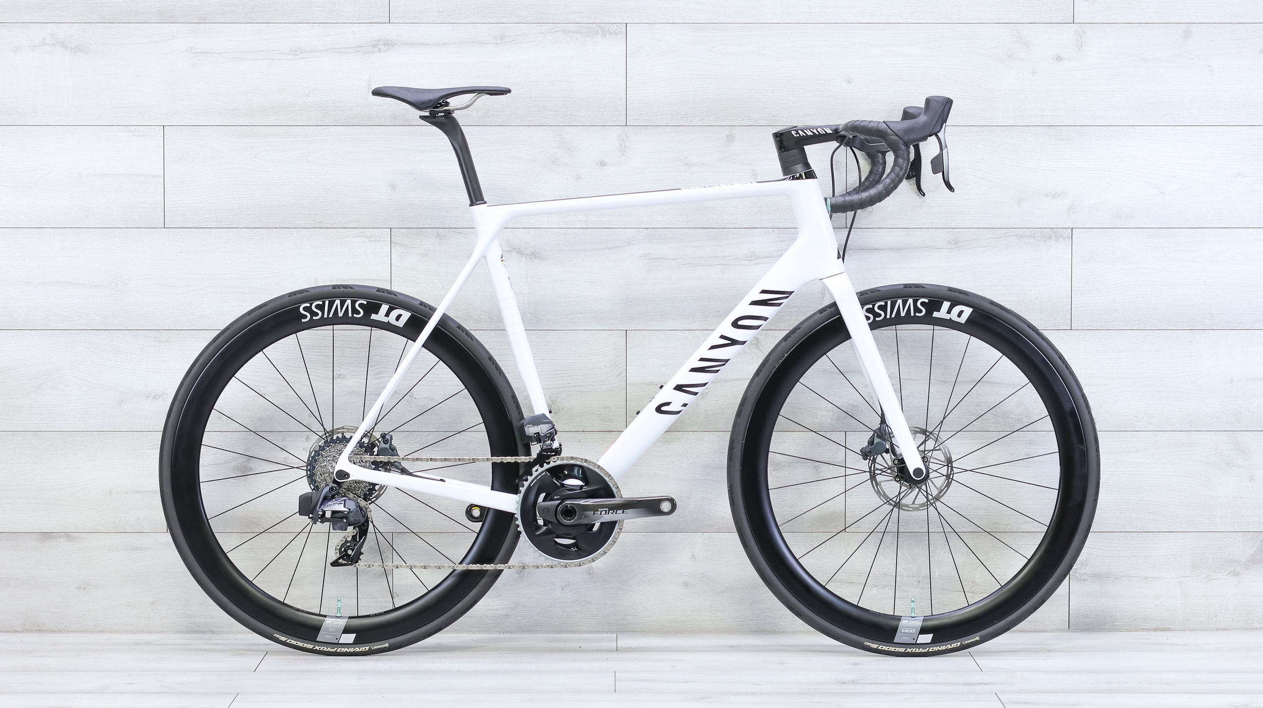 The Canyon Ultimate CF SLX 8 Disc eTap is a lightweight, race-focused road bike built for speed, efficiency, and precision handling. Its high-modulus carbon frame delivers crisp power transfer and responsive climbing performance, while aerodynamic shaping keeps it efficient at higher speeds. Equipped with SRAM Force eTap wireless electronic shifting and disc brakes for consistent stopping power, the Ultimate CF SLX 8 Disc combines cutting-edge drivetrain technology with precise control. Balanced race geometry ensures sharp handling without sacrificing comfort, making it an ideal choice for competitive riders and fast group rides.